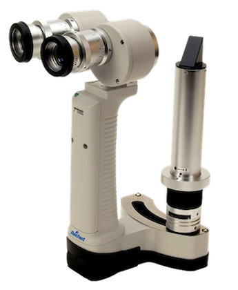 Our handheld slit lamp provides a close-up, magnified view of the front structures of the eye (cornea, lens, iris, eyelids). This helps us diagnose conditions like cataracts, dry eye, corneal disease, and ocular surface disorders with precision.